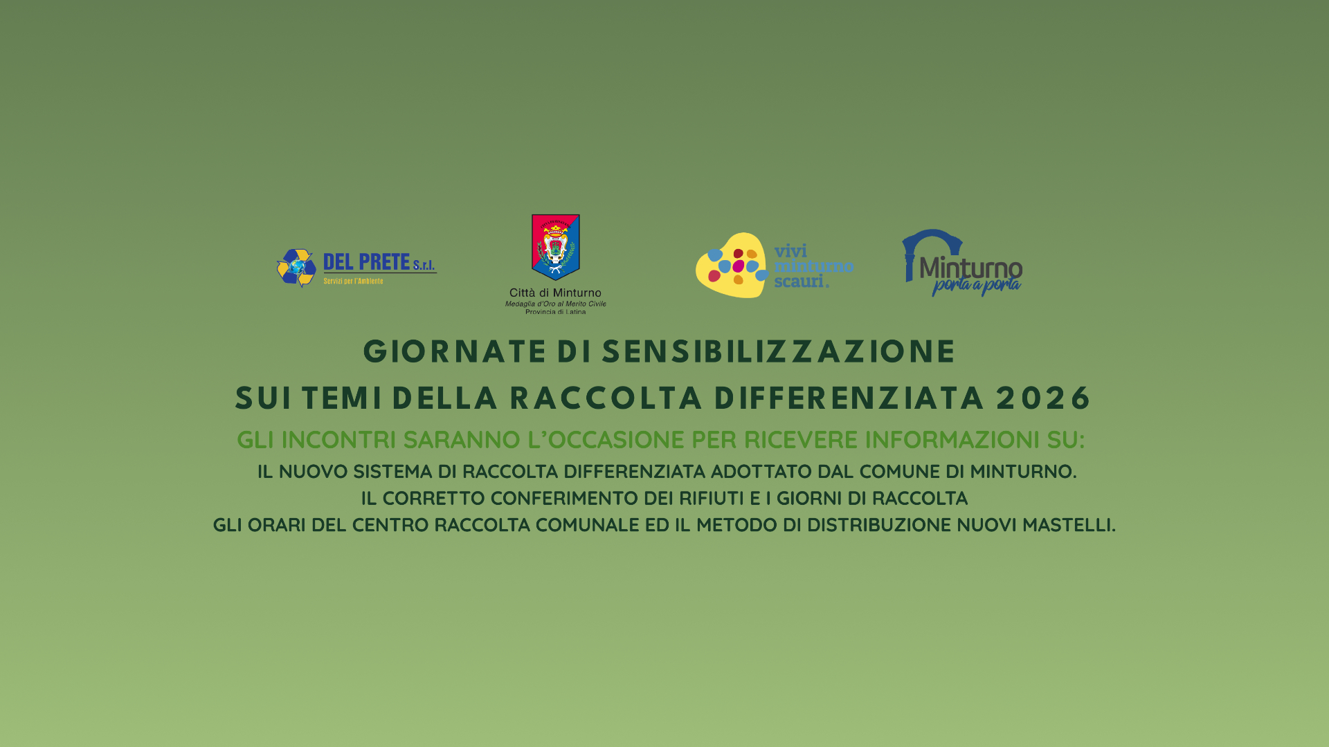Giornate di sensibilizzazione sui temi della raccolta differenziata e Giornate ecologiche 2026