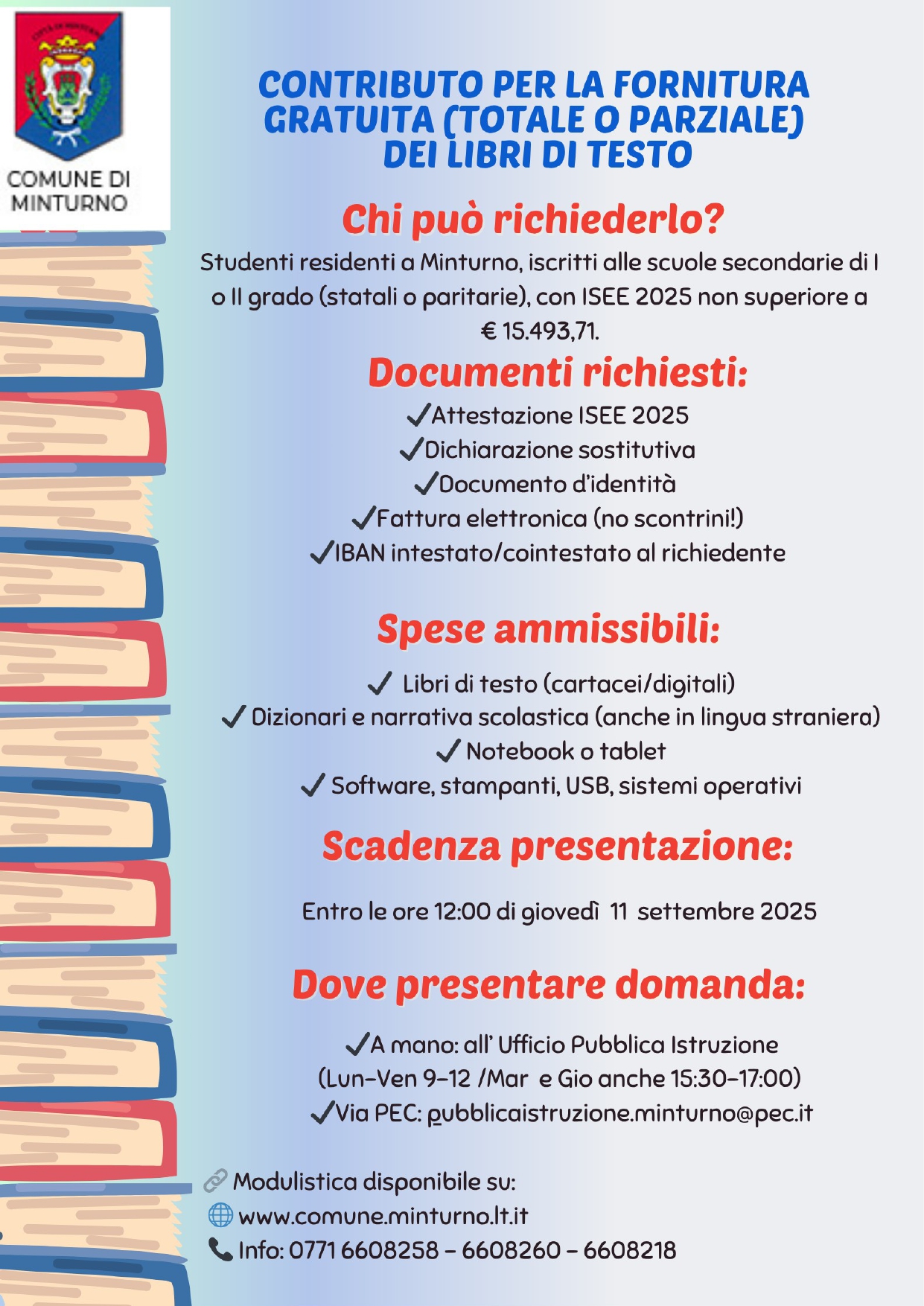 Libri di testo, contributo per la fornitura gratuita – A.S. 2025/2026