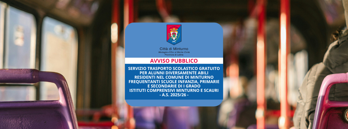Il Comune di Minturno mette a disposizione degli alunni con disabilità un servizio di trasporto scolastico gratuito, dalla propria abitazione alla sede della scuola frequentata, compatibilmente con le risorse finanziarie disponibili in bilancio.