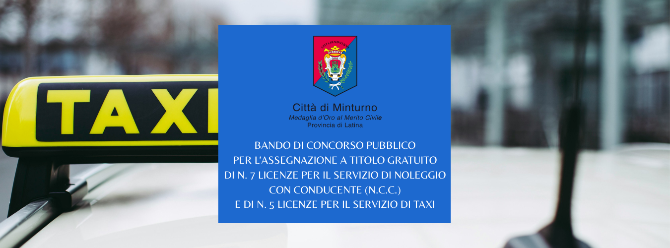 Bando di concorso pubblico per l’assegnazione a titolo gratuito di n. 7 licenze per il servizio di N.C.C. e di n. 5 licenze per il servizio Taxi
