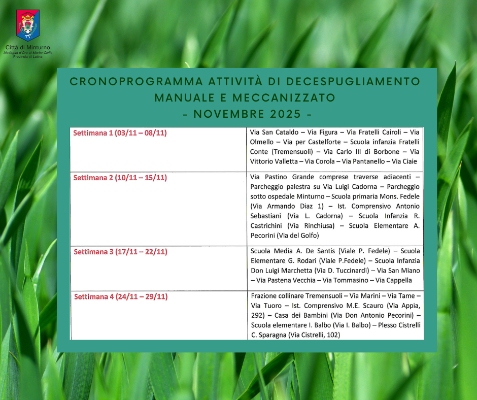 Cronoprogramma attività di decespugliamoento manuale e meccanizzato🌿🌳